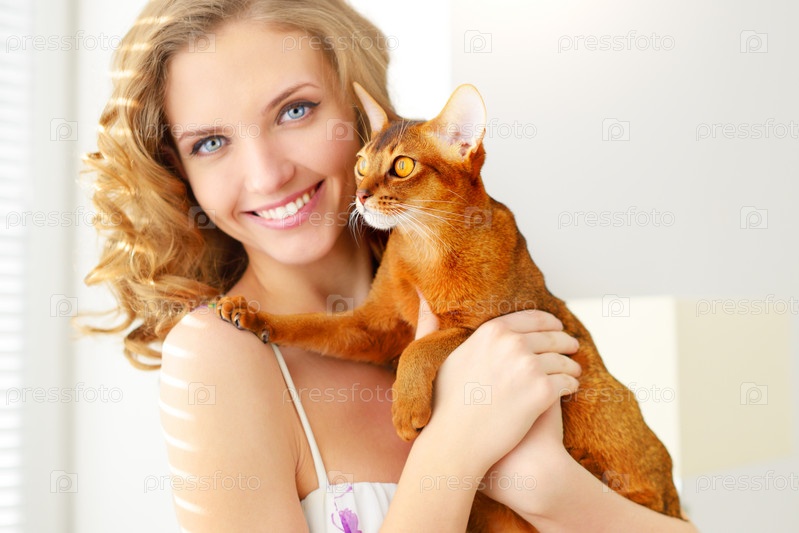 Девушка с абиссинской кошкой