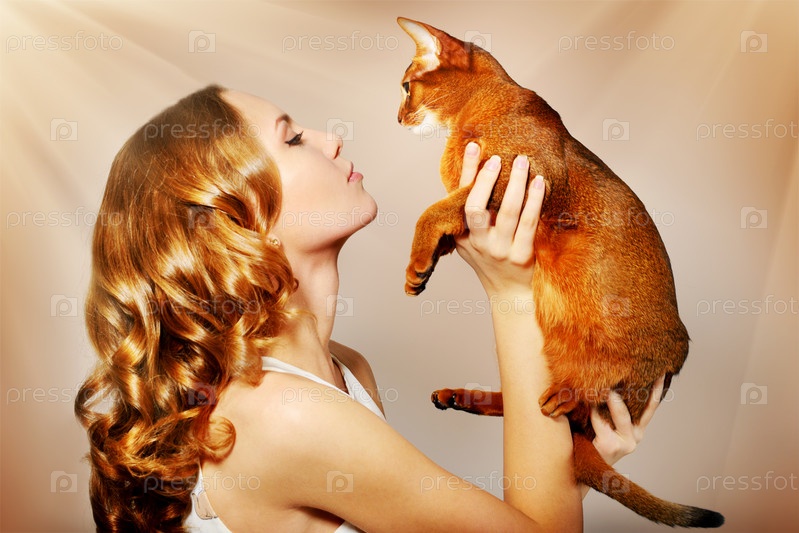 Девушка с абиссинской кошкой