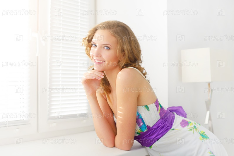 Улыбающаяся девушка у окна