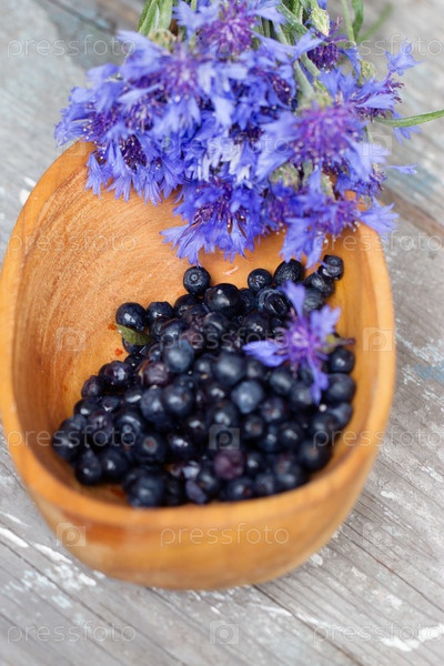Черника в большой деревянной ложке