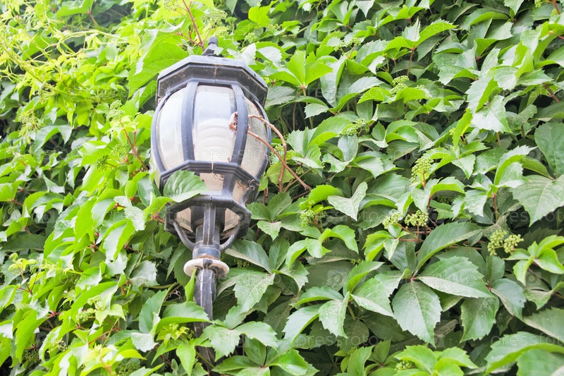 Уличный фонарь и зеленая листва