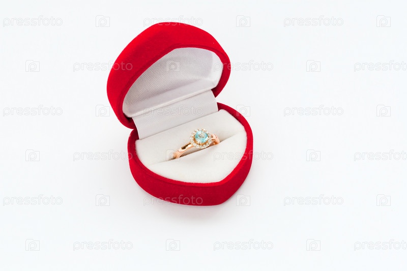 Золотое кольцо с бриллиантом в красной коробке