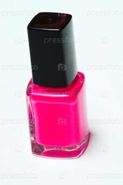 Розовый лак для ногтей на белом фоне