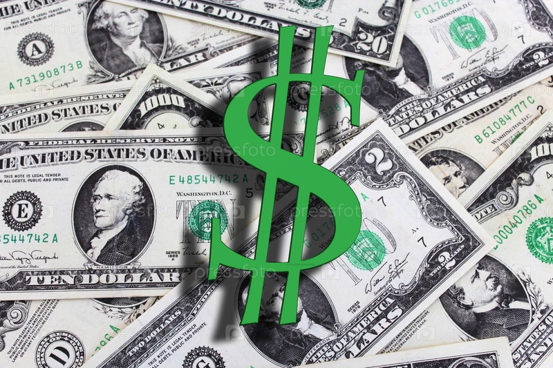 Буква S на фоне долларовых банкнот