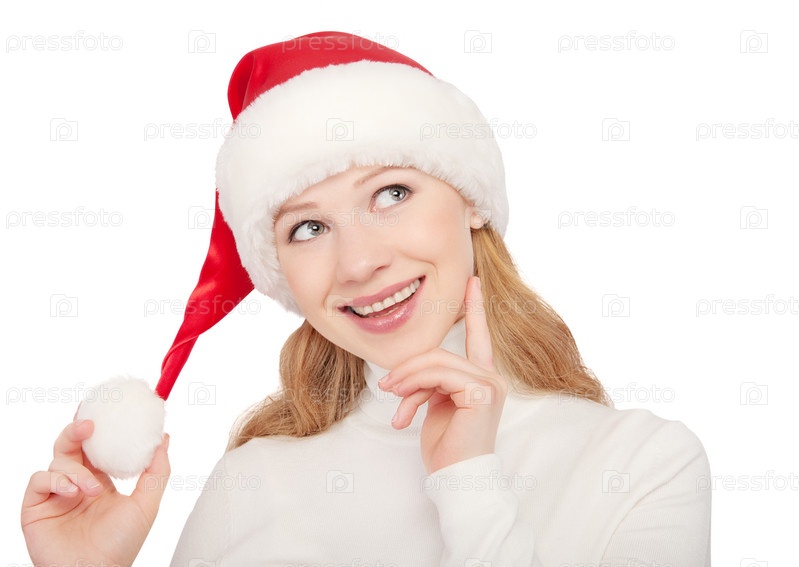 Рождественская счастливая девушка, изолированная на белом фоне