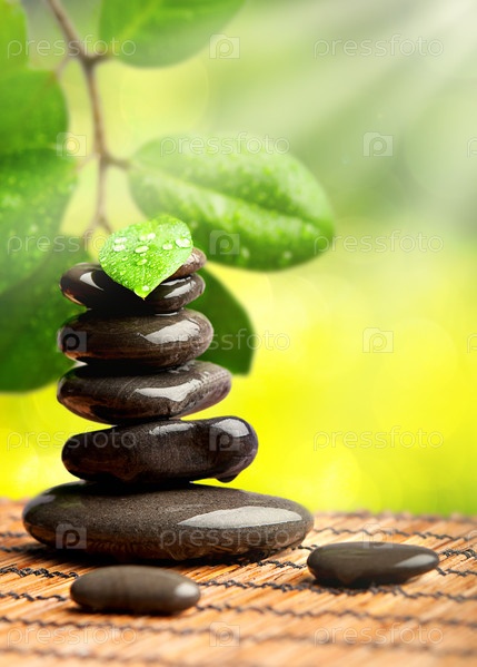Зеленый спа-фон. Камни с каплями воды