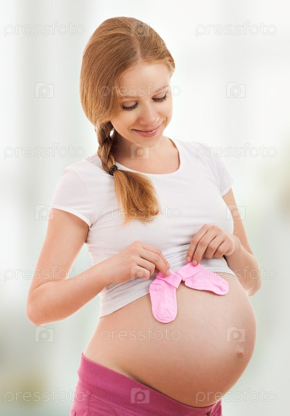 Счастливая беременная женщина и розовые носки