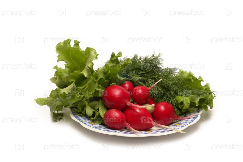 Редис с листьями салата и укропом