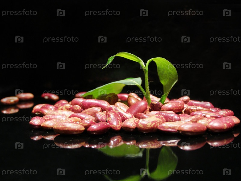 Пророщенная фасоль на черном фоне