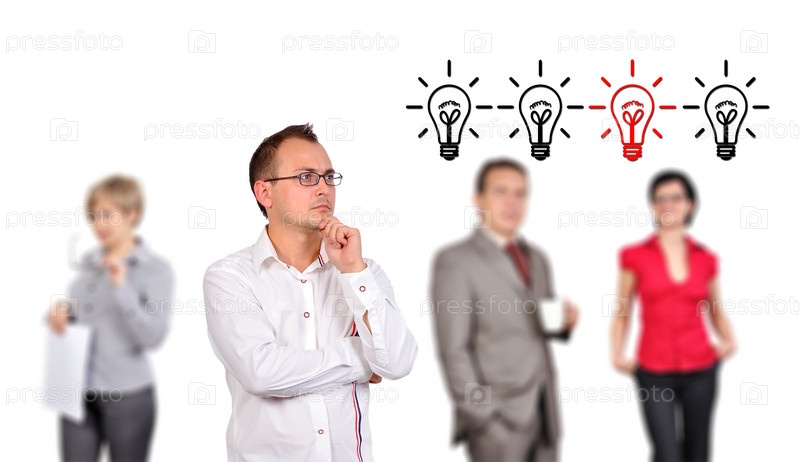 Мужчина рисует лампочки