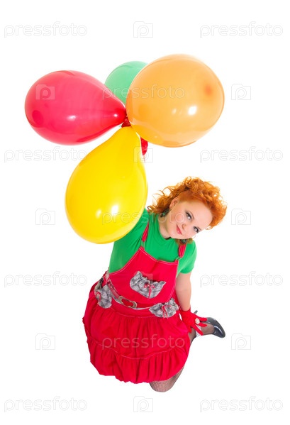 Счастливая красивая девушка летит с шарами