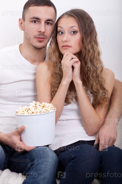 Молодая пара смотрит телевизор