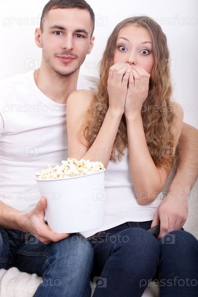 Молодая пара смотрит телевизор
