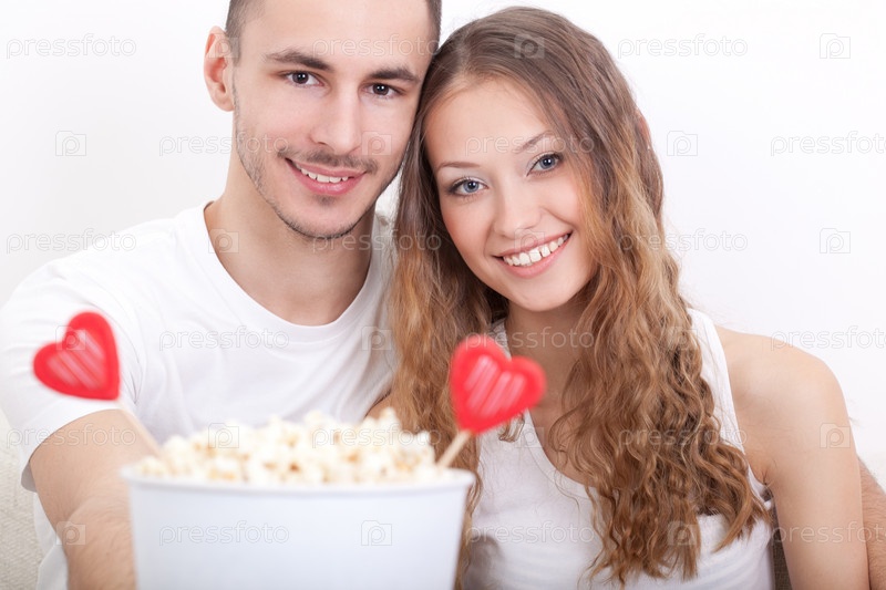 Молодая пара с попкорном