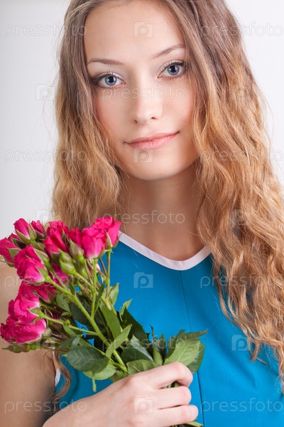 Женщина держит букет роз