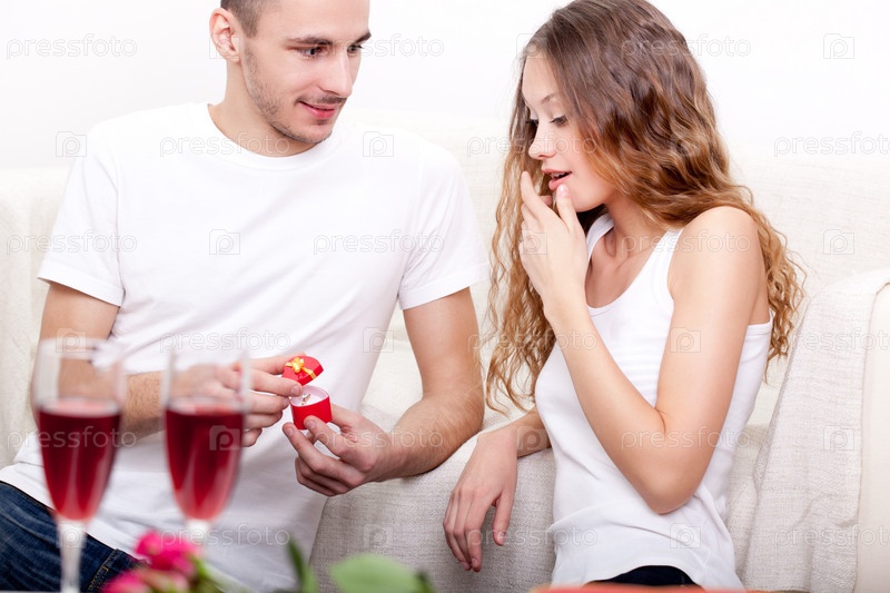 Молодой мужчина предлагает кольцо своей подруге