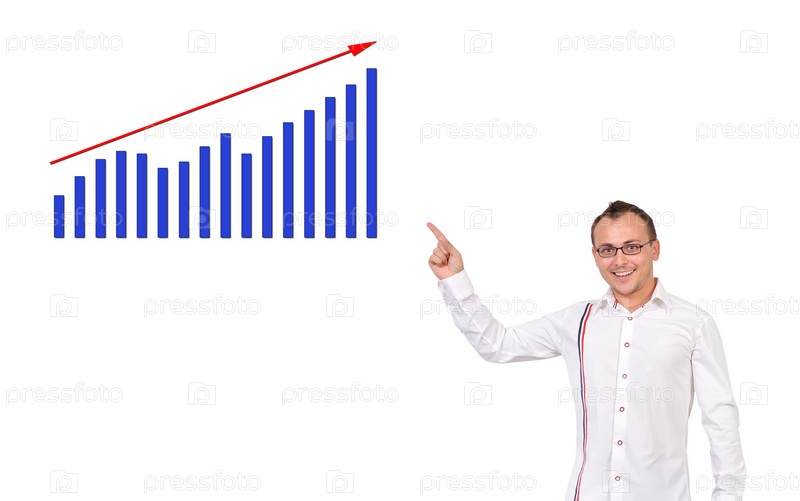 Мужчина указывает на диаграмму