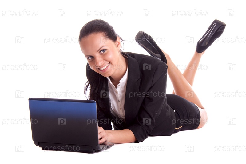 Девушка лежит на полу с ноутбуком