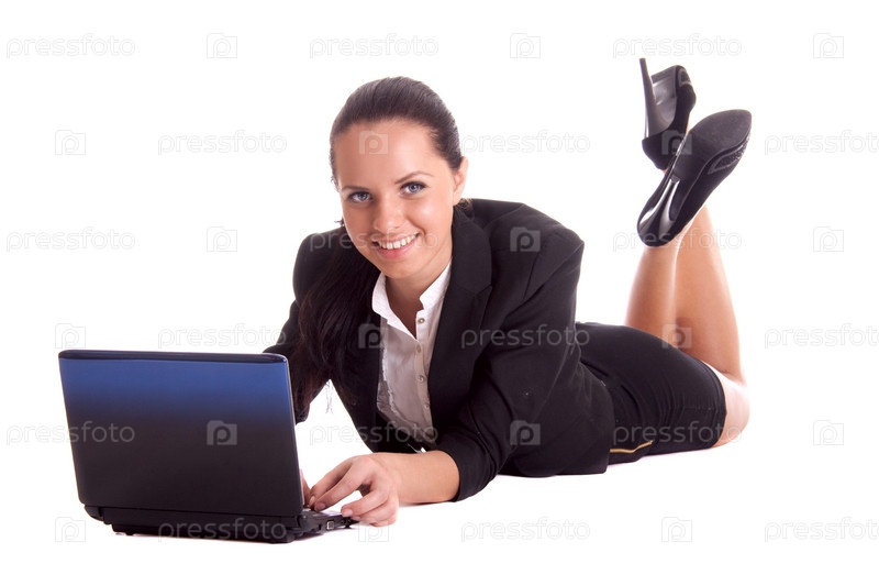 Девушка лежит на полу с ноутбуком