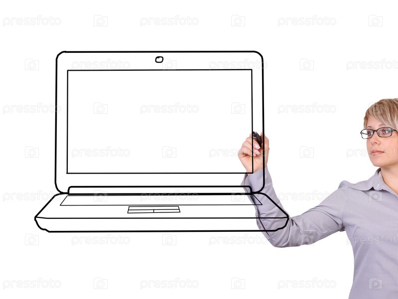 Женщина рисует ноутбук