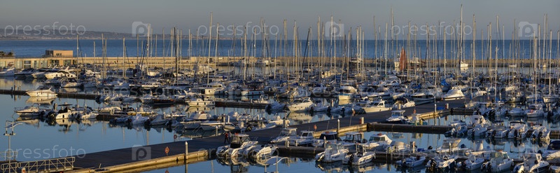 Италия, Сицилия, Средиземное море, Марина ди Рагуза, роскошные яхты в порту на закате