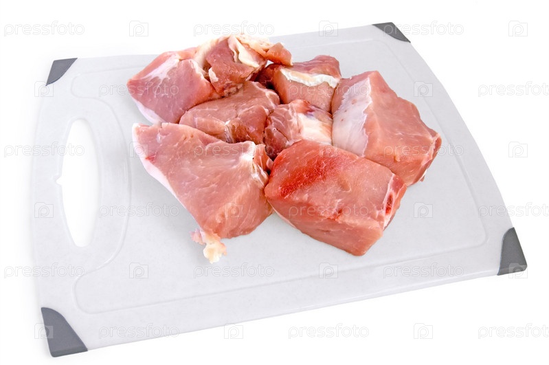 Свинина, нарезанная крупными кусками на разделочной доске