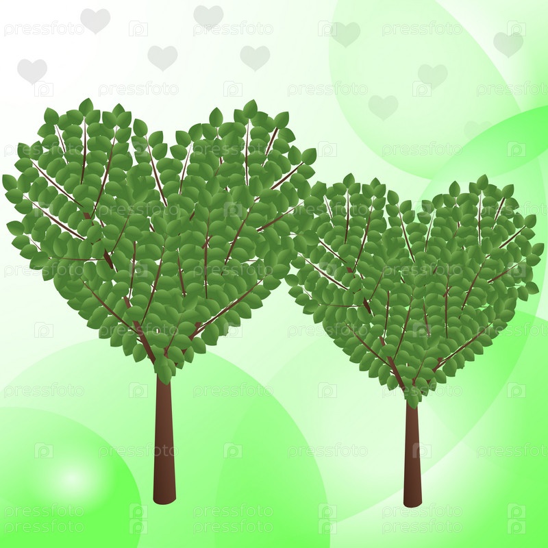 Валентинка, зеленый фон для вашего сайта, визитная карточка с зеленым деревом в форме сердца