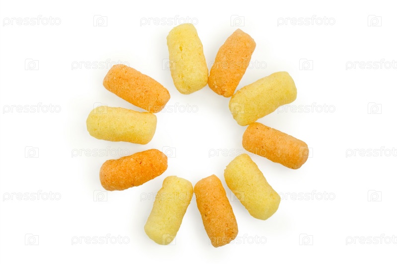 Солнышко из разноцветных кукурузных палочек на белом фоне