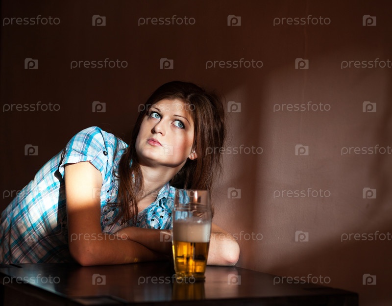 Молодая женщина пьет пиво