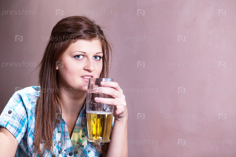 Молодая женщина пьет пиво