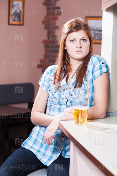 Молодая женщина пьет пиво