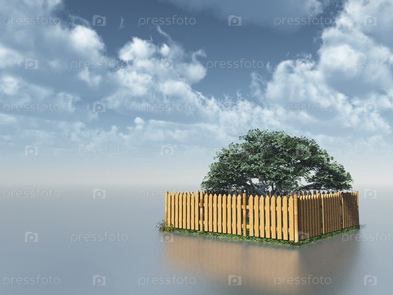 Небольшой сад с деревьями - иллюстрация 3d