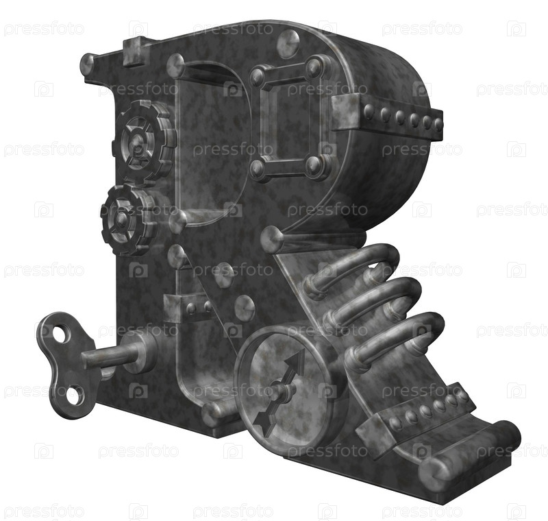 Стимпанк буква r на белом фоне - 3d иллюстрация