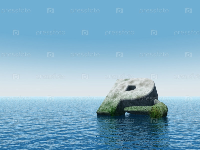 Буква p упала на воду - 3d иллюстрация