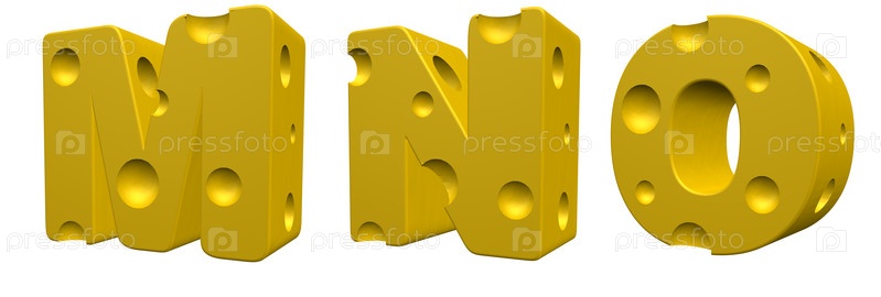 Сырные буквы mno на белом фоне - 3d иллюстрация