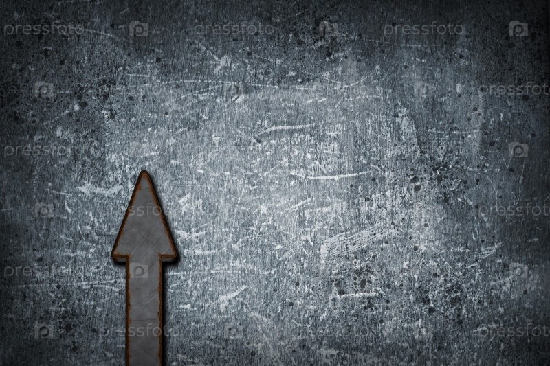Ржавая металлическая стрелка на гранжевом фоне. 3d Иллюстрация