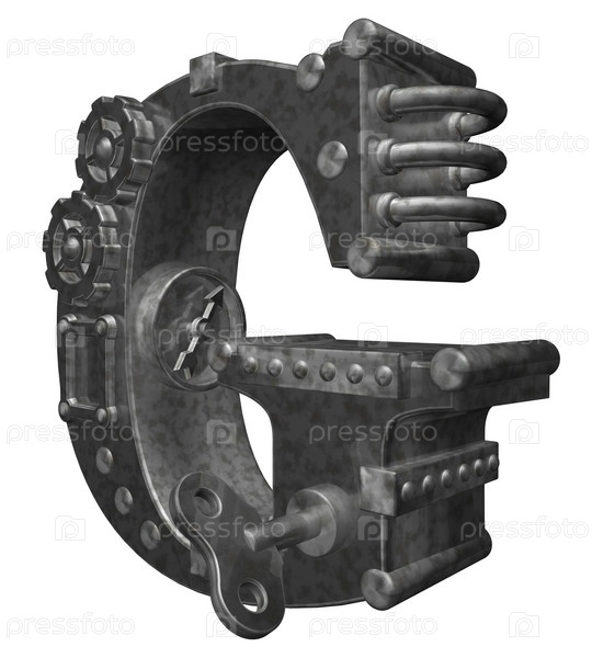 Буква g в стиле стимпанк на белом фоне. 3d Иллюстрация