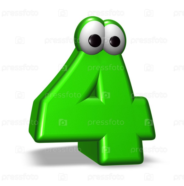 Число четыре с мультипликационными глазами на белом фоне. 3d Иллюстрация