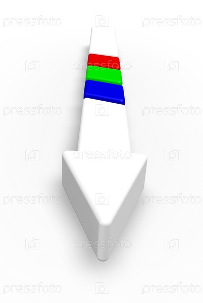 Стрелка с полосками в цветах rgb - 3d иллюстрация