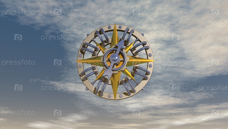Компас на облачном небе - 3d иллюстрация