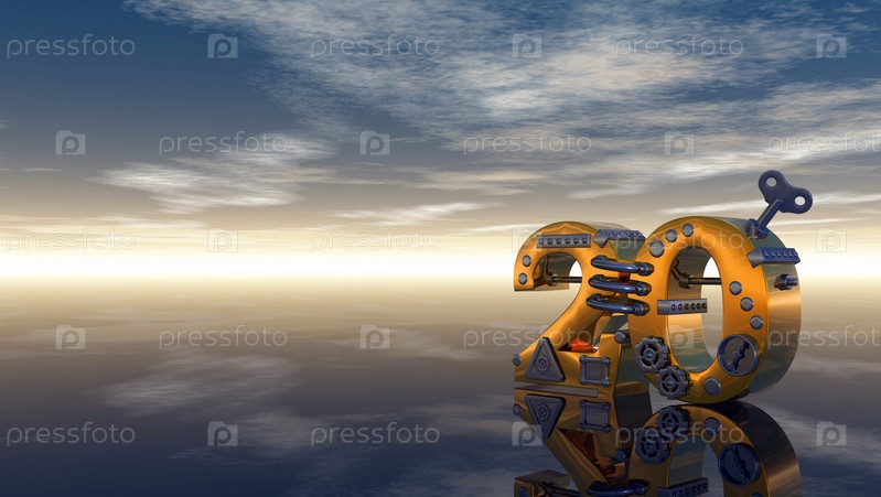 Стимпанк цифра 20 на фоне неба - 3d иллюстрация
