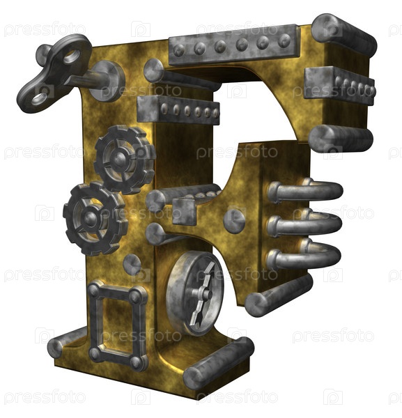 Буква f в стиле стимпанк на белом фоне. 3d Иллюстрация
