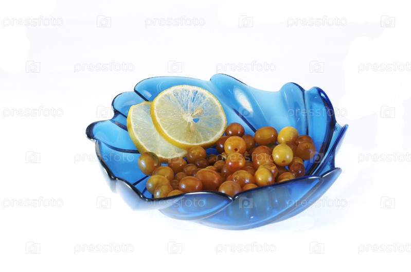 Ваза с кусочками янтаря и лимоном. Натюрморт