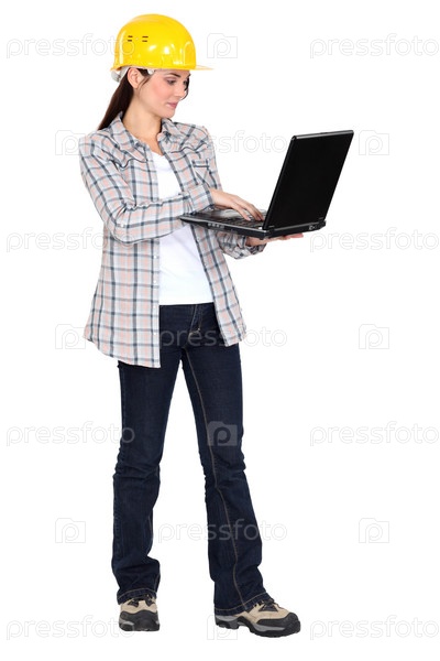 Женщина в каске с ноутбуком