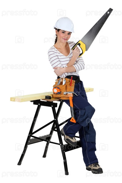 Женщина-рабочий с пилой
