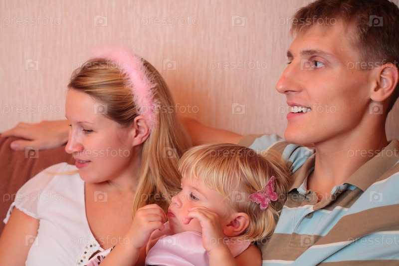 Родители и дочь у телевизора