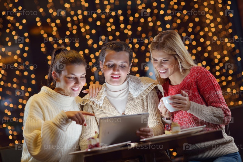 Счастливые девушки смотрят на планшетный ПК