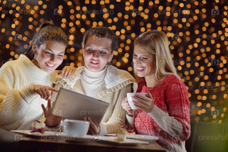 Счастливые девушки смотрят на планшетный ПК