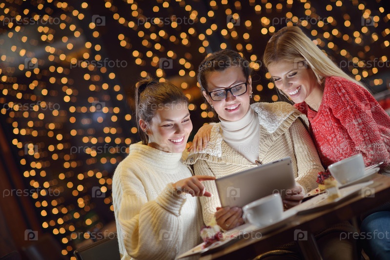 Счастливые девушки смотрят на планшетный ПК