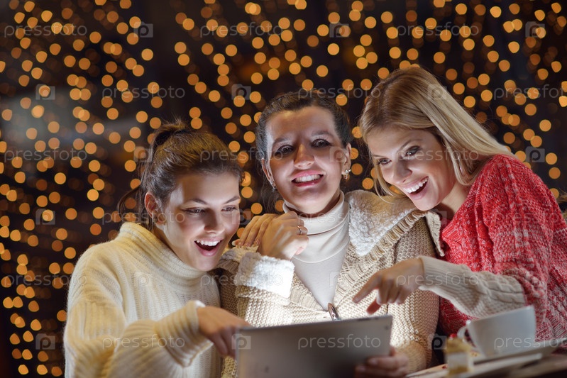 Счастливые девушки смотрят на планшетный ПК